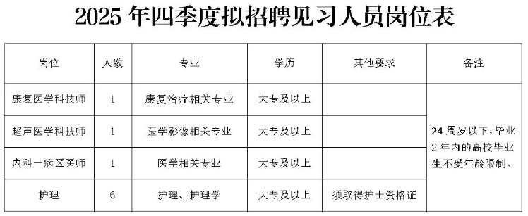 2.具有良好的医德医风,团队合作意识强,身体健康,能胜任应聘岗位的工作。